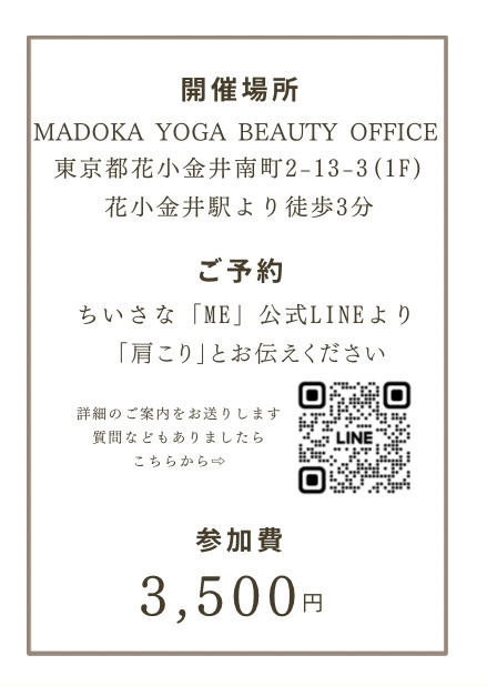 | 場所 | MADOKA YOGAサロン(花小金井南町2-13-3 1F) |